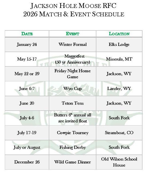 The Jackson Hole Moose RFC is Western Wyoming's premiere source for the glorious sport of rugby. Learn the great sport of rugby under the shadow of the Teton Range - no experience necessary!